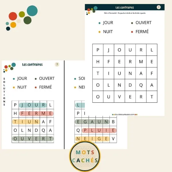 • 6 petites grilles de 3 à 4 mots (mots de gauche à droite)