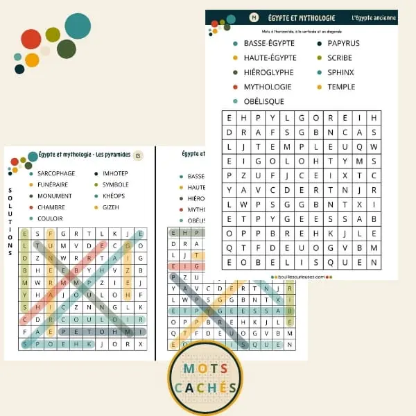 • 9 grilles de 9 mots sur le thème de l’Egypte et du jardin (mots à l’horizontale, à la verticale et en diagonale)